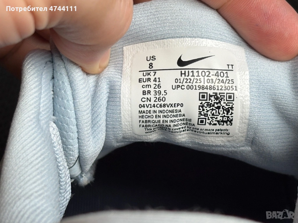 Размерът по етикет е 41 (какъвто си нося на други модели Nike), но отговарят на 40, леко ми стискаха и след час носене ме заболяваха глезените. Купих си същите 42 (съответно отговарят на 41) и сега нося тях без проблем. Явно моделът е такъв…. Понеже съм ги носил не мога да ги върна.