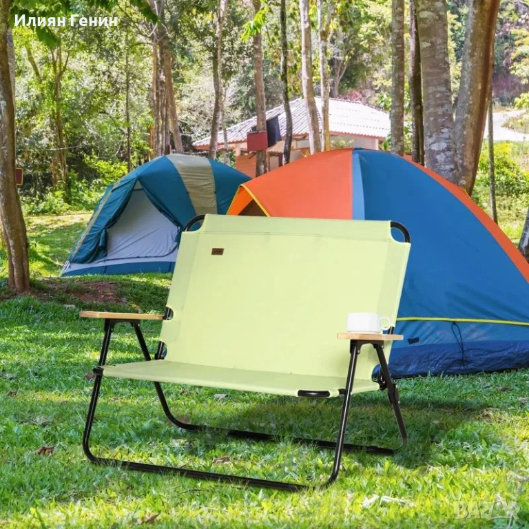 Двойна седалка: Този просторен къмпинг стол позволява свободно и спокойно сядане и дори предлага достатъчно място за двама души. Идеален за къмпинг, пикници, барбекюта или други дейности на открито.
