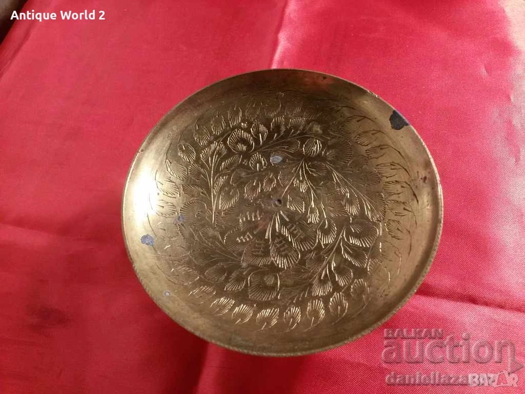 Стар Красив Орнаментиран Малък Бронзов съд.