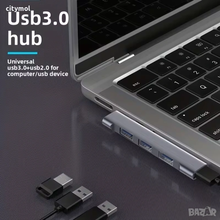 USB 3.0 хъб с 4 порта, 5Gbps, пренос на данни, мулти сплитер OTG за PC лаптоп ноутбук