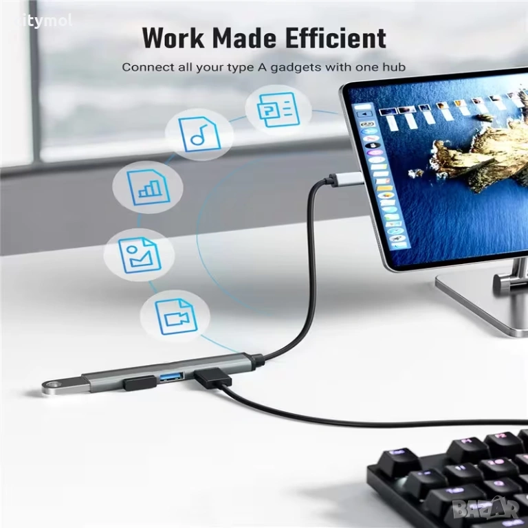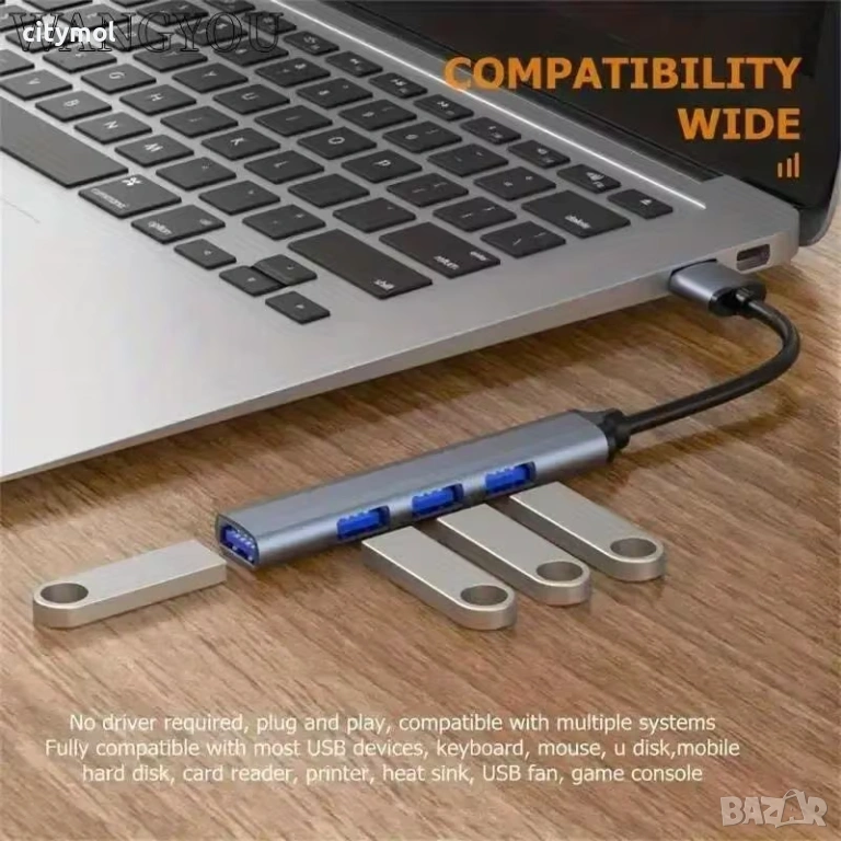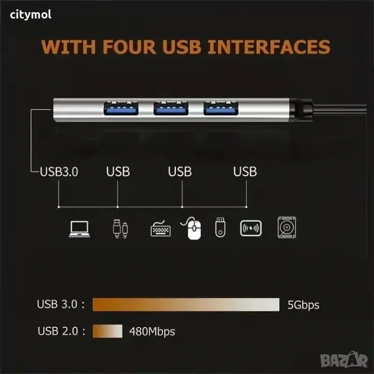 4 в 1 Хъб USB 3.0 5Gbps, пренос на данни, мулти сплитер за PC лаптоп ноутбук