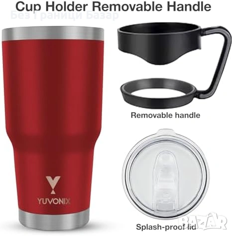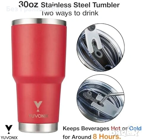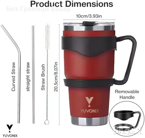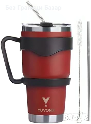 Нова Термочаша 30oz неръждаема с дръжка и сламка, вакуум изолация