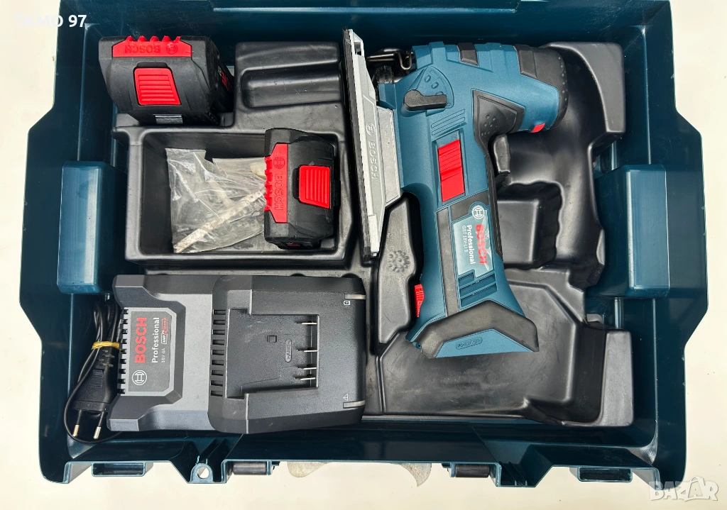 Продавам акумулаторен прободен трион (зеге) на Бош от синята професионална серия с потенциометър за регулиране на оборотите. Зегето е като нов, както се вижда на снимките и работи перфектно. Оригинално унгарско производство, внос от Франция. Комплекта се продава така, както си е на снимките машината с 2 батерии по 18V 4.0Ah с индикатор от ProCore серията, зарядно устройство и оригинален L-boxx куфар. Пращаме с опция преглед и тест с куриерска фирма еконт може и лично предаване за гр. Шумен.