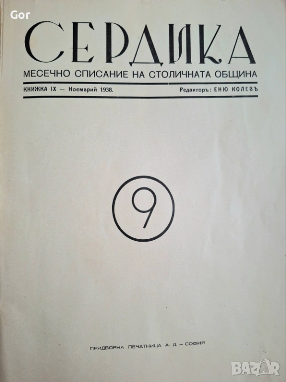 Предлагам оригинален брой на списание „Сердика“, 1938 г., кн. 9 – месечно издание на Столичната община.