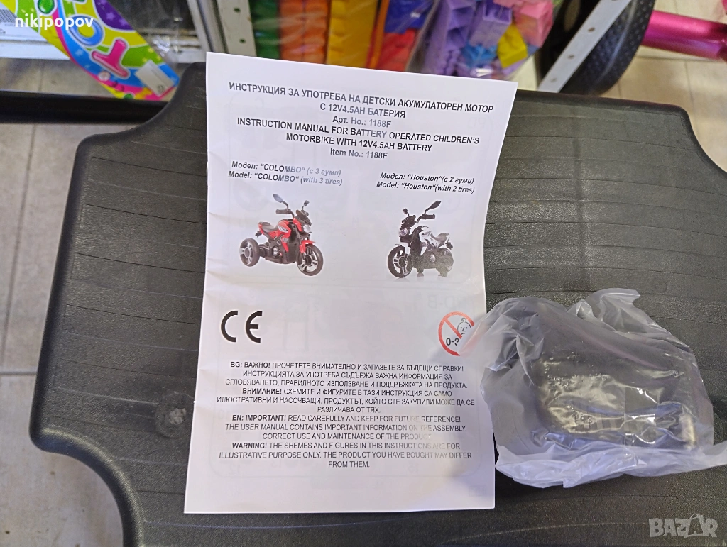Акумулаторните играчки имат 12 месеца гаранция за фабрични дефекти на задвижващите механизми (редуктори, електромотори).