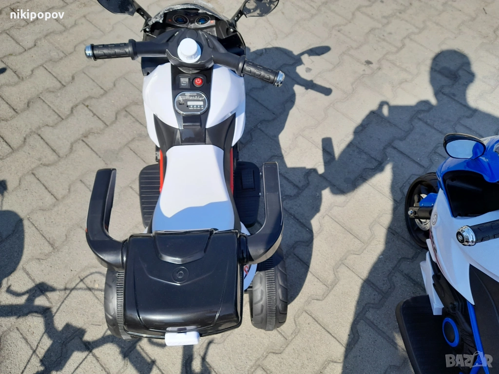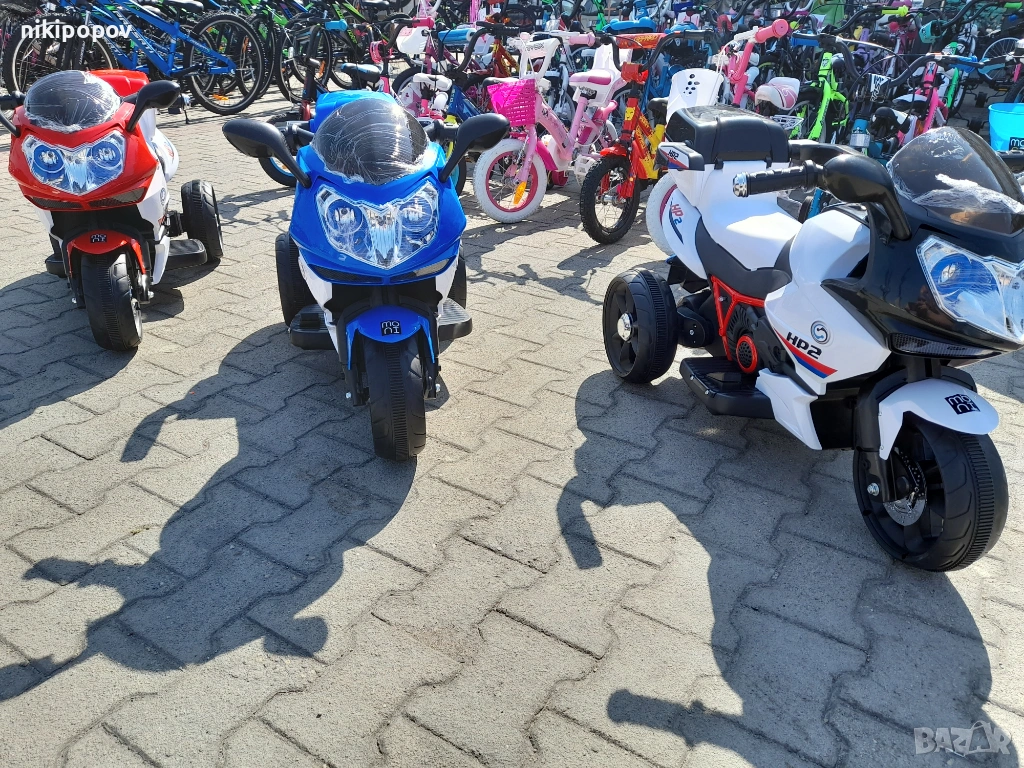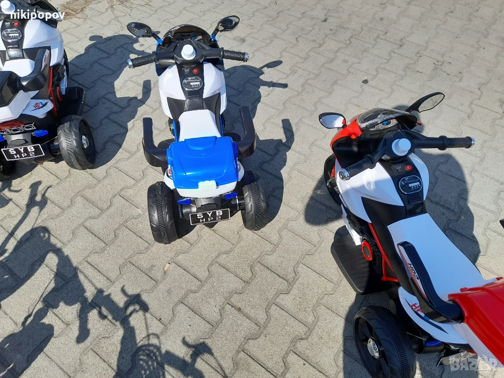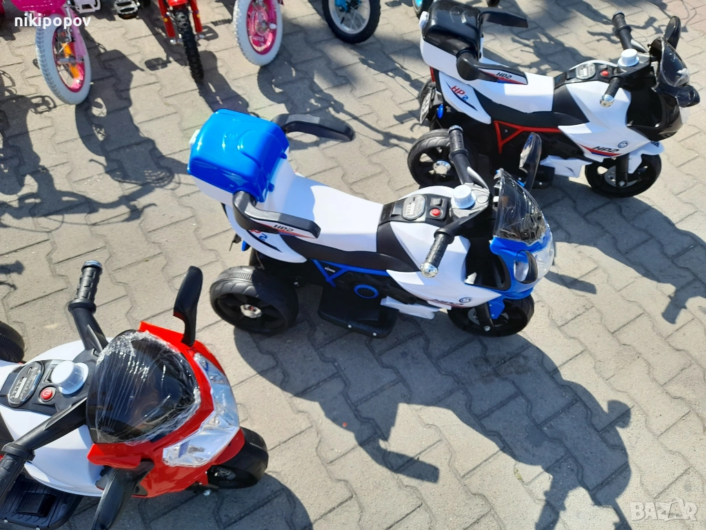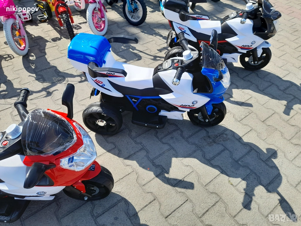 Акумулаторен мотор HP2 e с 3 гуми и е подходящ за деца от 3 до 6 години и максимално тегло 30 кг. Мотора е с един двигател, 1 скорост – 5 km/h, превключвател за включване/ изключване, с музикални функции с опция за регулиране силата на звук и задна кошница за играчки.