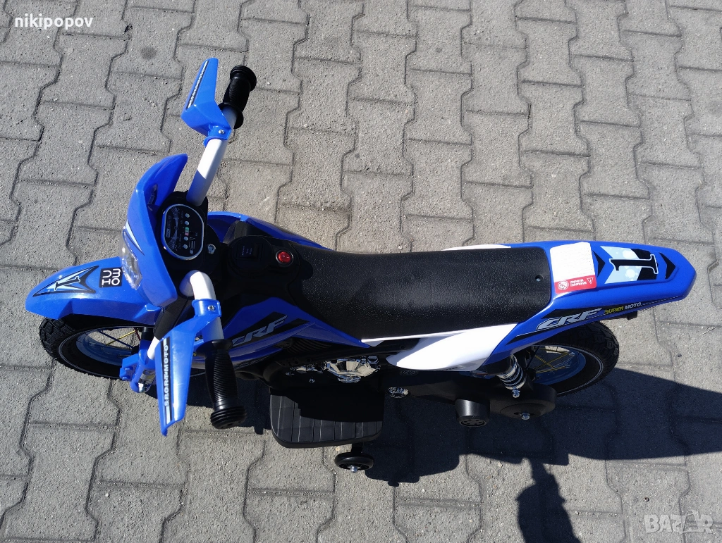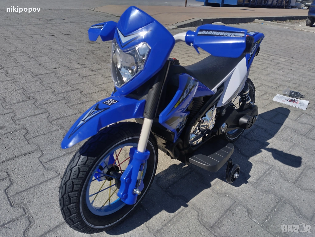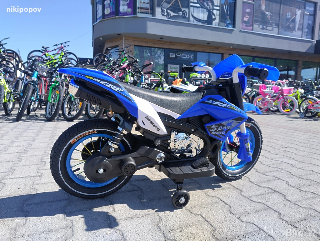 Акумулаторен мотор Super Moto е подходящ за деца от 3 до 6 години и максимално тегло 30 кг. Мотора е с помпещи гуми, двигател, скорост 5 km/h, превключвател за включване/ изключване, с музикални функции с опция за регулиране силата на звук и помощни колела.