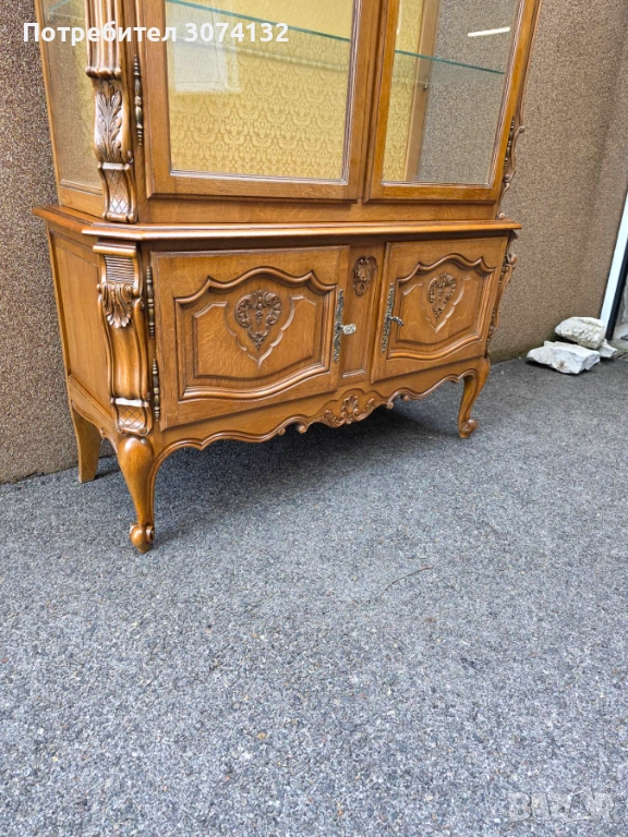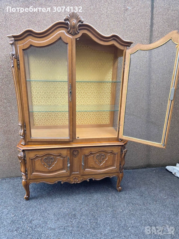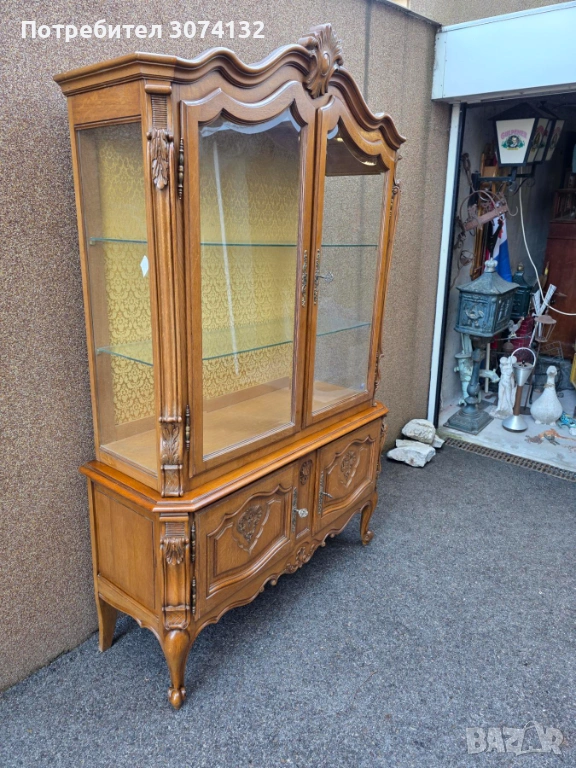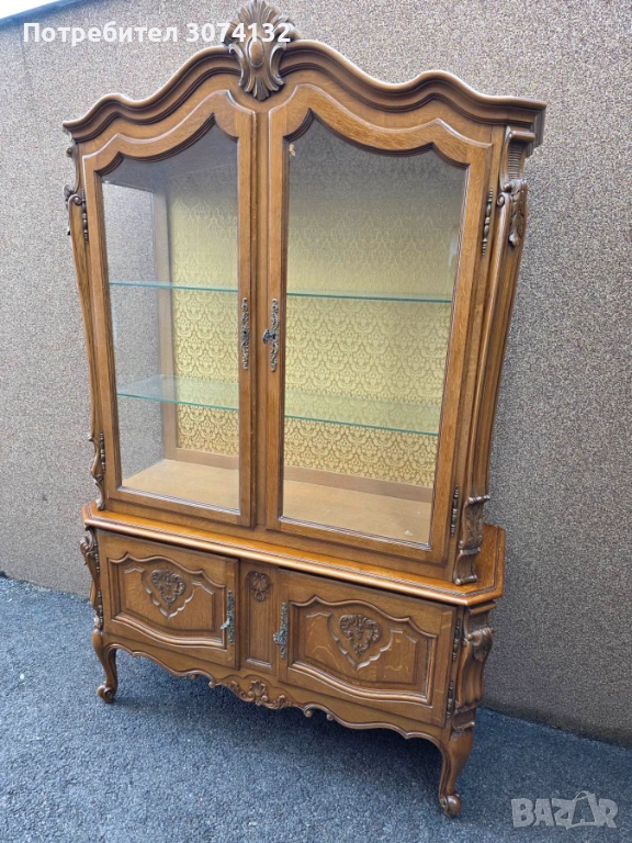 Витрина в стил Луи 15 с дърворезба и кристални стъкла → Обява 53569894