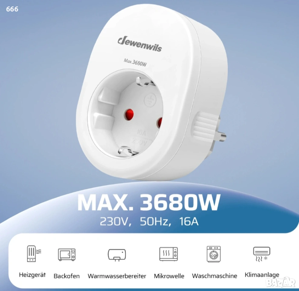 Тип: Радио контакт (Plug-in) с безжичен стенен ключ
