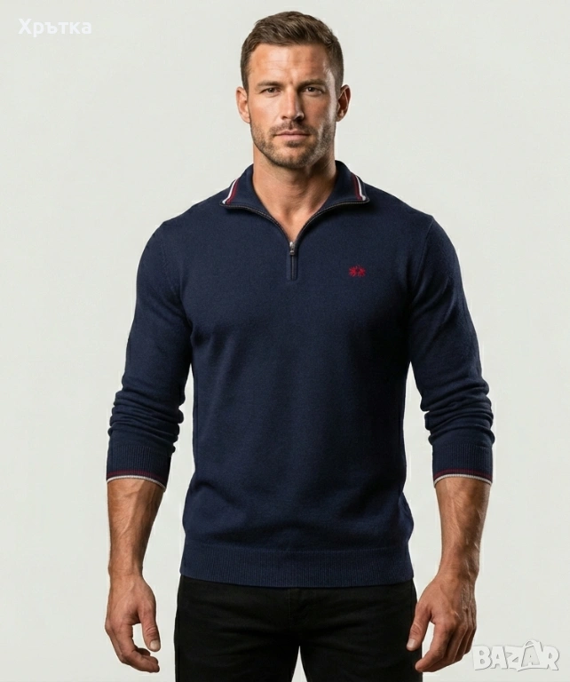 La Martina - Оригинален мъжки пуловер с цип размер M