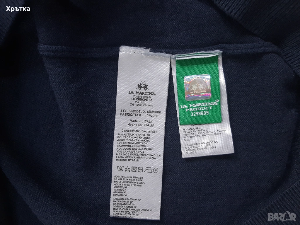 Премиум мъжки пуловер La Martina, изработен в Италия от висококачествена смесена материя с мериносова вълна.