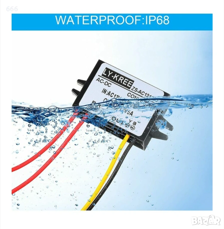 Cozevdnt AC-DC преобразувател, 10-28V AC към 12V DC, 5A, IP68, водоустойчив, черен → Обява 53570382