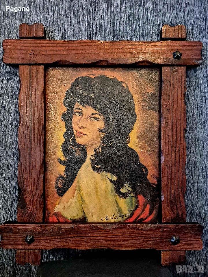 Продавам емблематичен ретро портрет на девойка от известния югославски художник Мирко Лалович (Mirko Lalovic). Творбата е в характерния за автора романтичен стил от 60-те и 70-те години на миналия век.