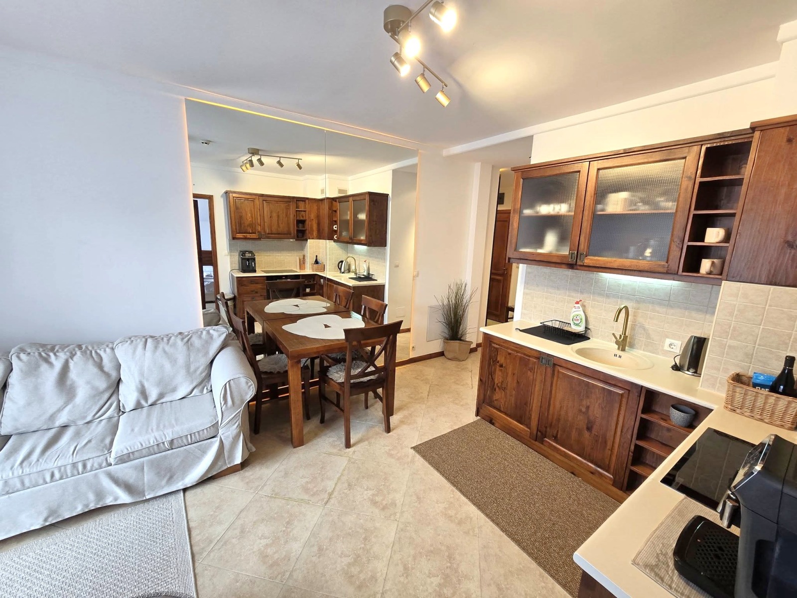 светла дневна с кухненски бокс и трапезария;