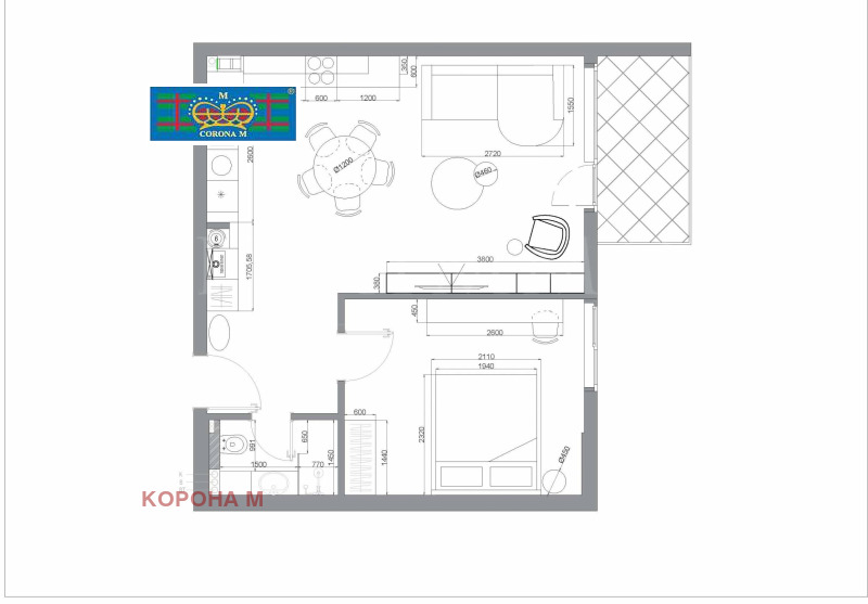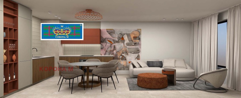 Kорона М представа на вашето внимание функционален, светъл и добре организиран двустаен апартамент в жилищна сграда Диада, която се намира в Манастирски ливади Запад, на 2 минути пеша до спирка на трамвай No7, на 4 мин пеша до бул. България , на 10 минути с кола до Витоша, на 15 минути с кола до Южен парк и центъра на София.