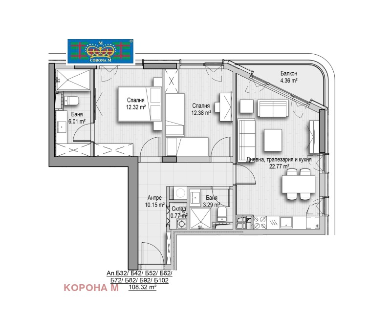 Корона М представя на вашето внимание 3-стаен апартамент с югоизточно изложение, с чиста жилищна площ от 89.73 кв.м в жк. Зоопарк, на бул. Симеоновско шосе, с предстоящо завършване през 2027г. Проектът се състои от две хармонично допълващи се сгради, обединени от обширно зелено пространство и предлага модерни апартаменти с функционални разпределения, изградени с висококачествени материали и съвременни решения. Сградите впечатляват с модерен екстериор и фасади с обилно естествено осветление, благодарение на високата степен на остъкленост и са разположени в един от най-атрактивните и бързо развиващи се райони на града, осигуряващ бърз достъп до основните транспортни артерии на столицата, както и непосредствена близост до автобусни спирки, детски градини и училища и Зоопарк София.