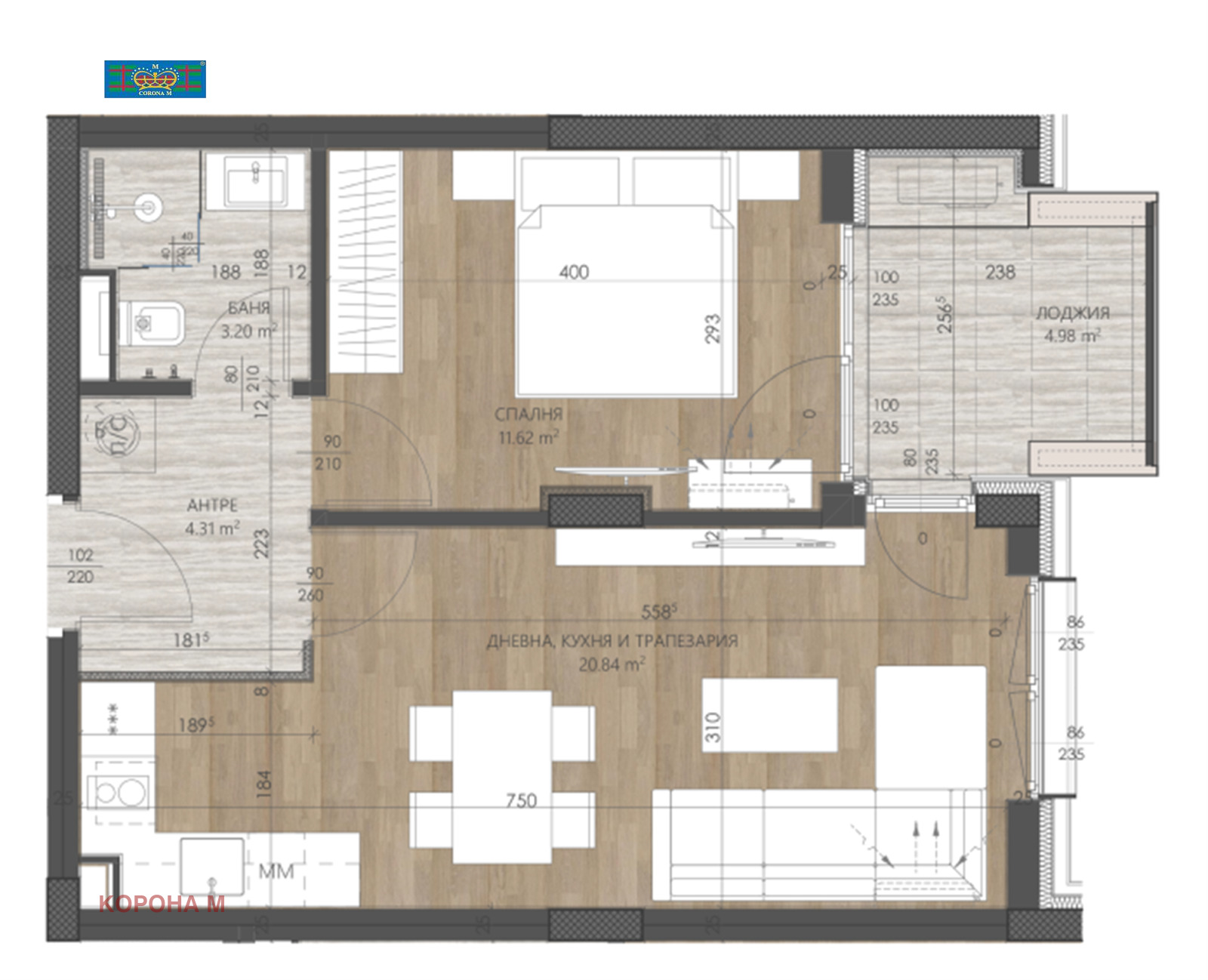 Корона м предлага на вашето внимание двустаен апартамент в луксозна бутикова сграда от най-висок клас, чиито дизайн на фасадата и общите части по неповторим начин допълват усещането за красота и комфорт. Разположена в престижния квартал Изгрев, сградата е изпълнена с най-висок клас строителни материали и иновативни технологии като: