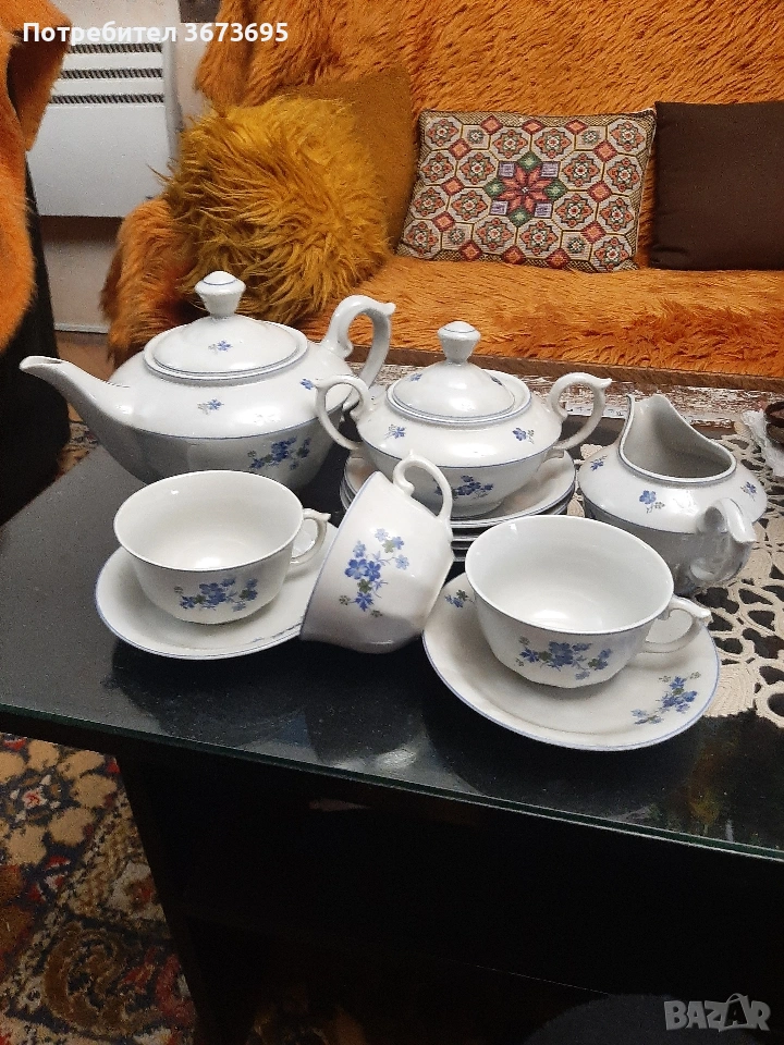 Порцеланов сервиз за чай с чайник захарница съд за мляко и по 6 чаши и чинийки → Обява 53570778