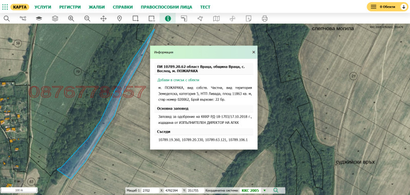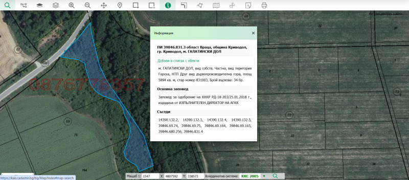 ПРОДАВАМ ПАКЕТ ~88 ДКА (87 991 кв.м) ЗЕМЕДЕЛСКИ ЗЕМИ И ГОРИ ГАЛАТИН / КРИВОДОЛ / ВЕСЛЕЦ