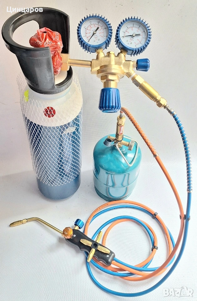Оксижен комплект-бутилки O2/5л. и газ/2.4л, горелка с 5бр. дюзи, вентил, маркуч