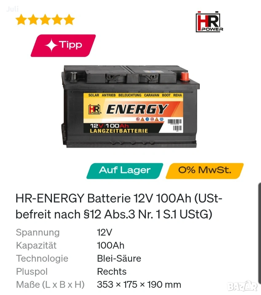 Чисто Нови 100А тягови акумулатори → Обява 53571421