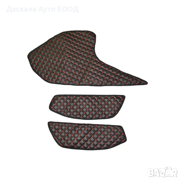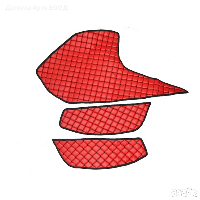 Добавете модерен и динамичен акцент към интериора на вашия DAF XF (2021+) с този комплект черни стелки за врати и кожено покритие за таблото с червен шев. Изработени от висококачествени и издръжливи материали, те осигуряват надеждна защита на вратите и таблото от надраскване, замърсявания и ежедневно износване. Контрастният червен шев подчертава стилния и професионален вид на кабината, съчетавайки естетика и практичност. Стелките и таблото се монтират лесно и пасват прецизно, без промяна на фабричния вид. Устойчивостта на UV лъчи и влага гарантира дълготрайна защита и комфорт при всяко пътуване.