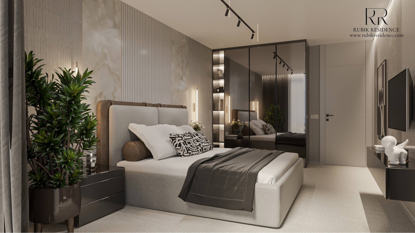 Спалните са обзаведени в изискан дизайн, който включва елементи от мрамор и дърво. Красивата комбинация от нежния мрамор и топлата текстура на дървото придава на пространството изтънченост и уют. Подовата настилка, изработена от нетъкан текстил, придава мекота и комфорт, допълнително засилвайки усещането за уют в спалнята.