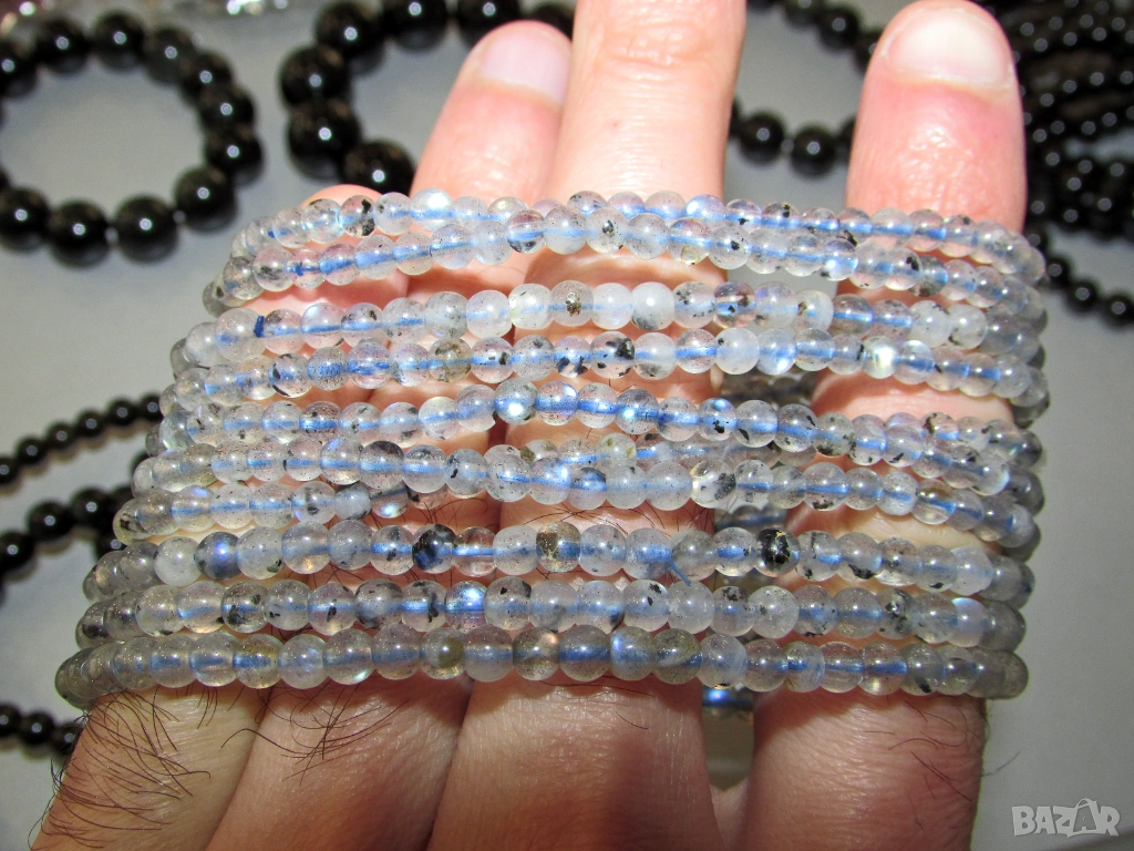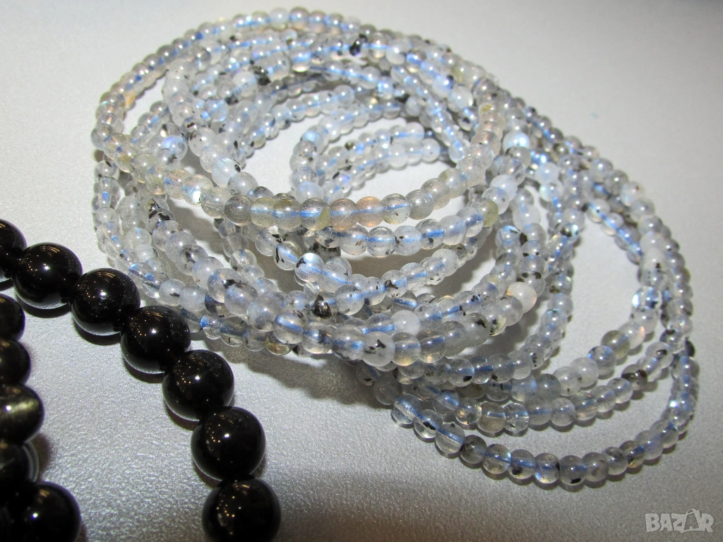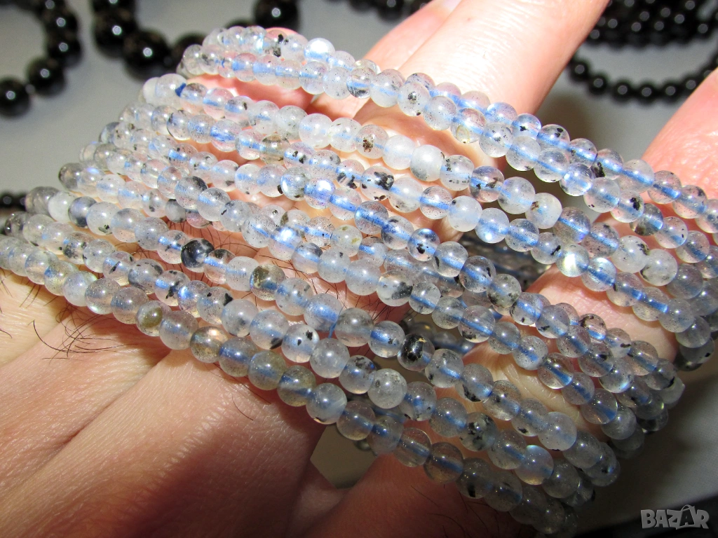 Перфектни минятурни гривнички от лунен камък/лабрадорит. 4мм. Цена 10 евро.
