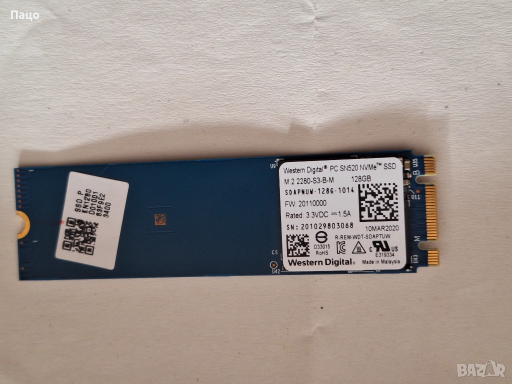 Western Digital PC SN520 128GB PCIe NVMe M.2 SSD Internal Solid State Drive/Тествано е,има снимки/с опция преглед и тест/Цената е Твърда,символична
