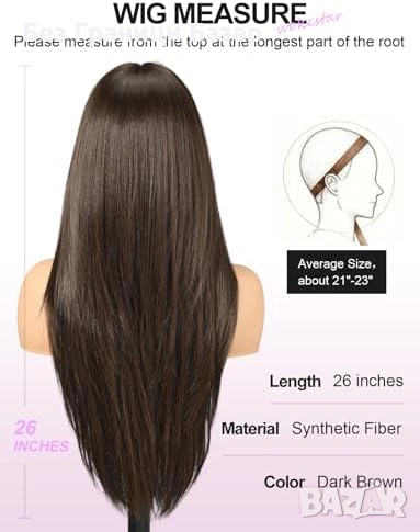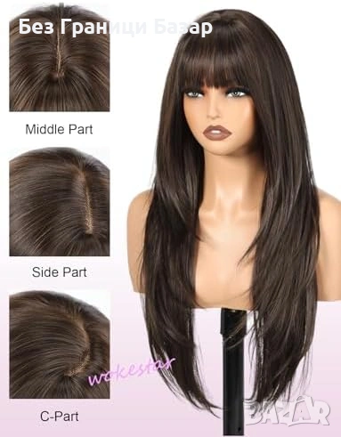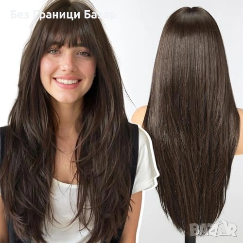 Дълга права перука с пластове и бретон – естествена визия за всеки ден