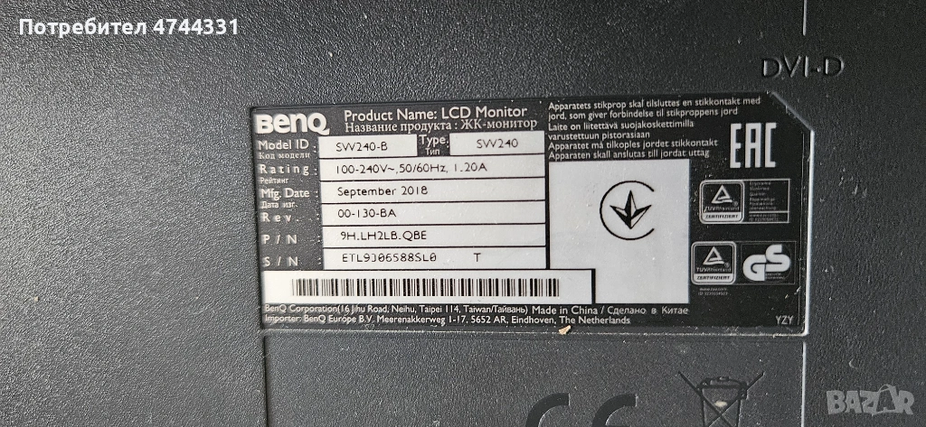 Монитор BenQ Adobe RGB SW240, снимка 1 - Монитори - 53571706 Монитор BenQ Adobe RGB SW240, снимка 2 - Монитори - 53571706 Монитор BenQ Adobe RGB SW240, снимка 3 - Монитори - 53571706 Монитор BenQ Adobe RGB SW240, снимка 4 - Монитори - 53571706 1/4