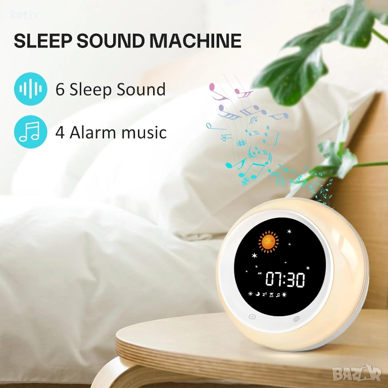 Детски будилник, часовник за сън със слънце и луна, машина за звукови ефекти при сън, нощна светлина с таймер, часовник за събуждане за деца и малки деца
