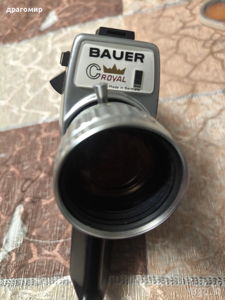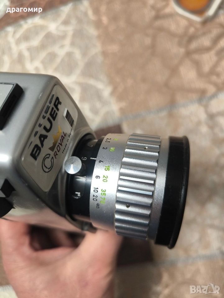 продавам видеокамера много запазена,BAUER CROYAL Made in Germany, имам още много други фотоапарати, камери, обективи, чанти, светкавици, батерии, зарядни устройства, касети, филтри, ремъци, ленти, при закупуване на повече неща отстъпка