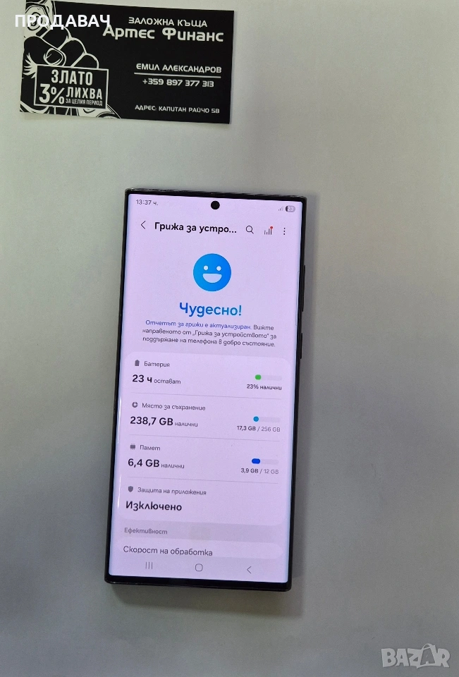 Телефонът е в добро състояние. Разполага с 256GB вътрешна памет и 12GB RAM. Изпращаме с опция преглед и тест за цялата страна.