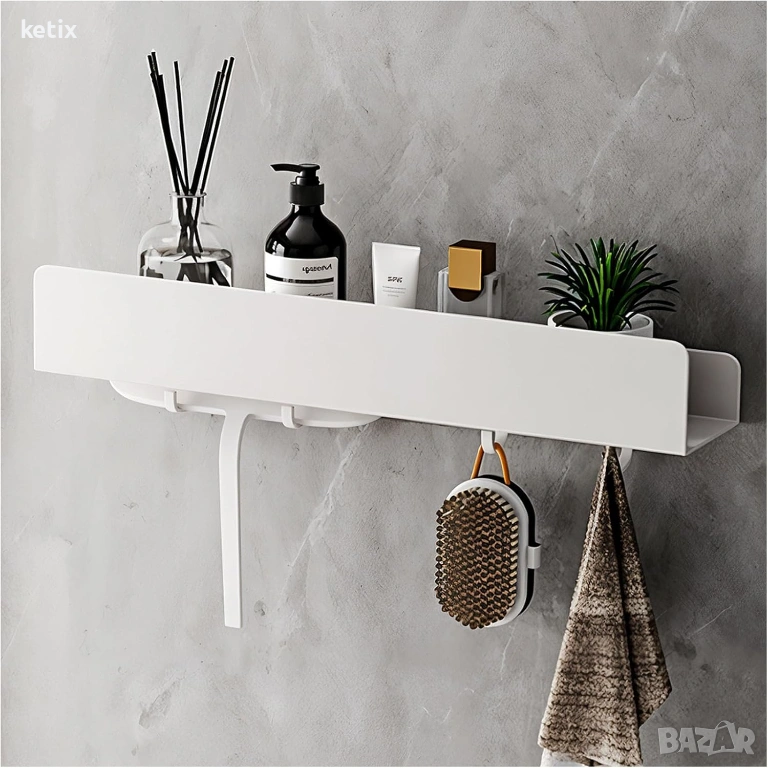 Практичен дизайн: с регулируеми куки за различни нужди за съхранение, можете да използвате кърпи, стъргалки за душ. Страничните отвори за окачване могат да се използват и за поставяне на самобръсначки или гъба за гъба. Дългите отвори за оттичане позволяват на водата да се оттича бързо и поддържат рафта в банята чист и сух.