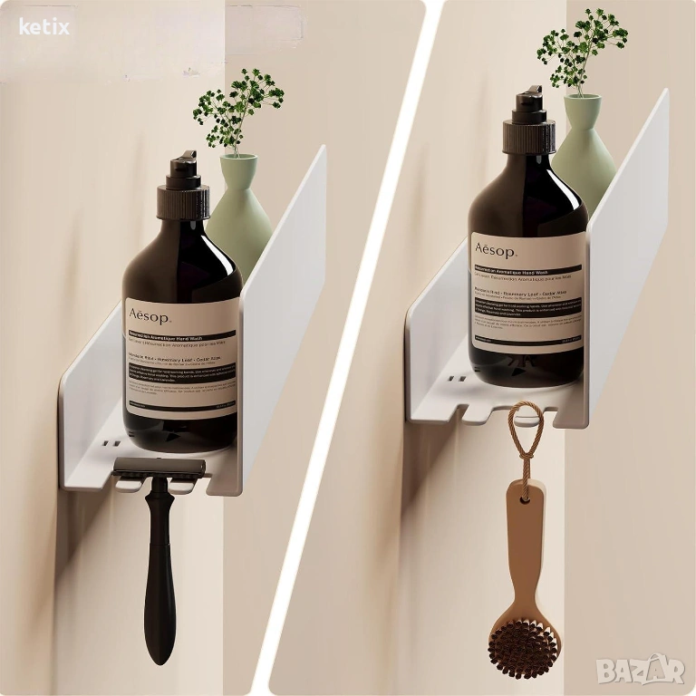 Без пробиване за лесен монтаж: този рафт за баня е със здрава самозалепваща лента, не е необходимо да се пробиват дупки по стената, много лесен за монтаж, просто намерете правилното място и използвайте включеното лепило, което не оставя следи, за да залепите окачването за стената върху гладка и равна повърхност. За най-добри резултати, притиснете здраво самозалепващия рафт за 60 секунди, оставете лепилото да стегне 72 часа преди употреба.