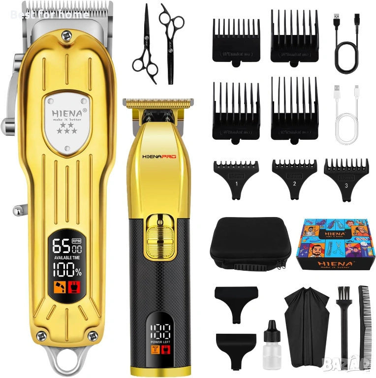 Комплект машинка за подстригване HIENA PRO за мъже, фризьорски комплект за подстригване на коса, безжична акумулаторна машинка и тример, комплект машинка за подстригване с LED дисплей, USB, подаръци за мъже