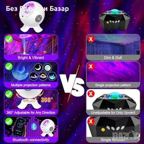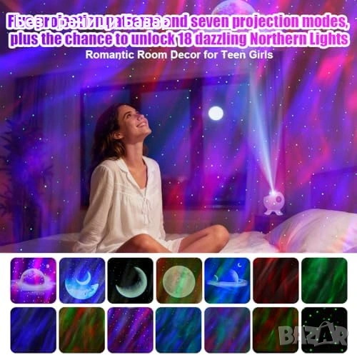 Проектор „звездно небе“ със 18 режима аврора (северно сияние)