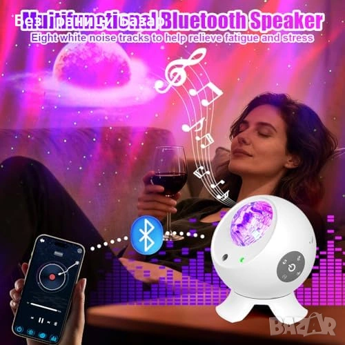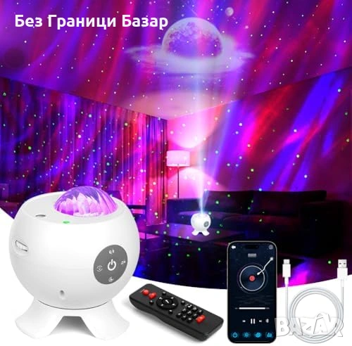 Нова Нощна лампа проектор галактика, 20м обхват, 7 режима, 5 шаблона