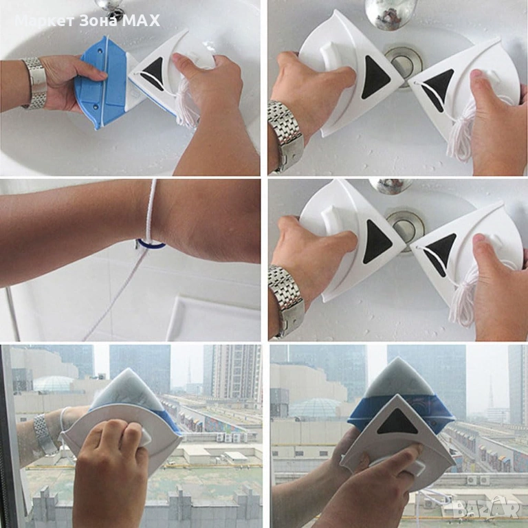 С двустранна магнитна конструкция можете едновременно да почистите вътрешната и външната страна на прозореца, което съкращава времето за почистване и увеличава безопасността.