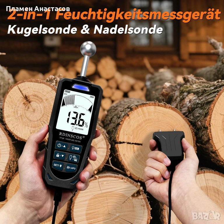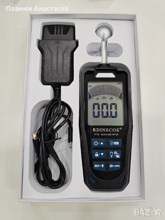 MT69 2-in-1 влагомер е универсален дигитален уред за измерване на влажност, който комбинира два режима в едно устройство – с игли (pin) и безконтактен (pinless). Подходящ е за дърво, мебели, стени, подове и строителни материали, като позволява бързо откриване на скрита влага и прецизни измервания.
