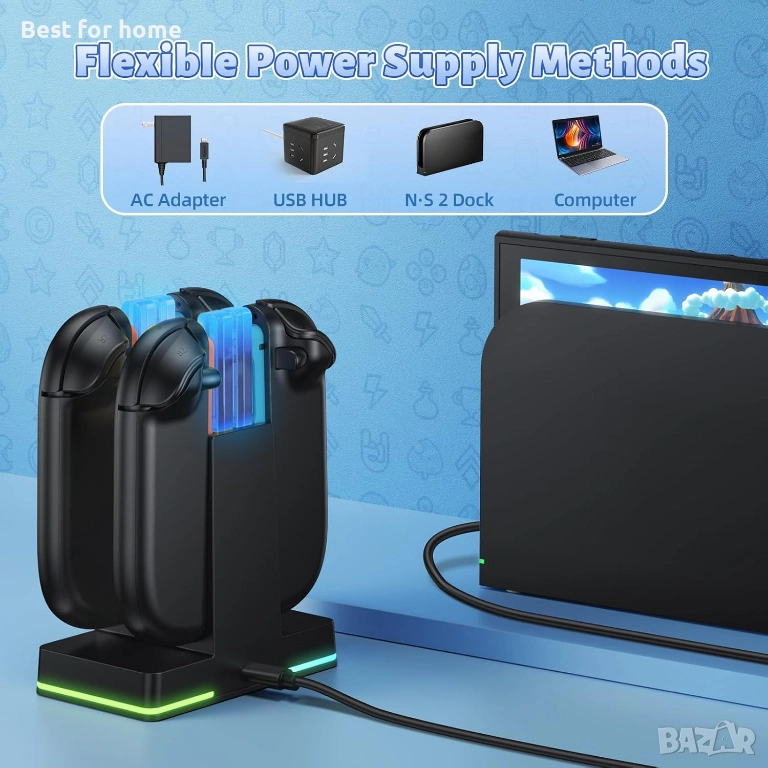 【Разширена безопасност и съвместимост с множество захранвания】Нашата зарядна докинг станция за Switch 2 Joy-con е оборудвана с множество защитни функции (защита от претоварване/свръхток/късо съединение/пренапрежение), осигуряващи безопасно зареждане. С различни опции за захранване, включително AC адаптери, докинг станцията на конзолата или вашия компютър - можете удобно да зареждате Joy-Con 2, където и да играете. Ако имате някакви въпроси, не се колебайте да се свържете с нас по всяко време, ние ще ви осигурим 24-часово приятелско обслужване 7*7.