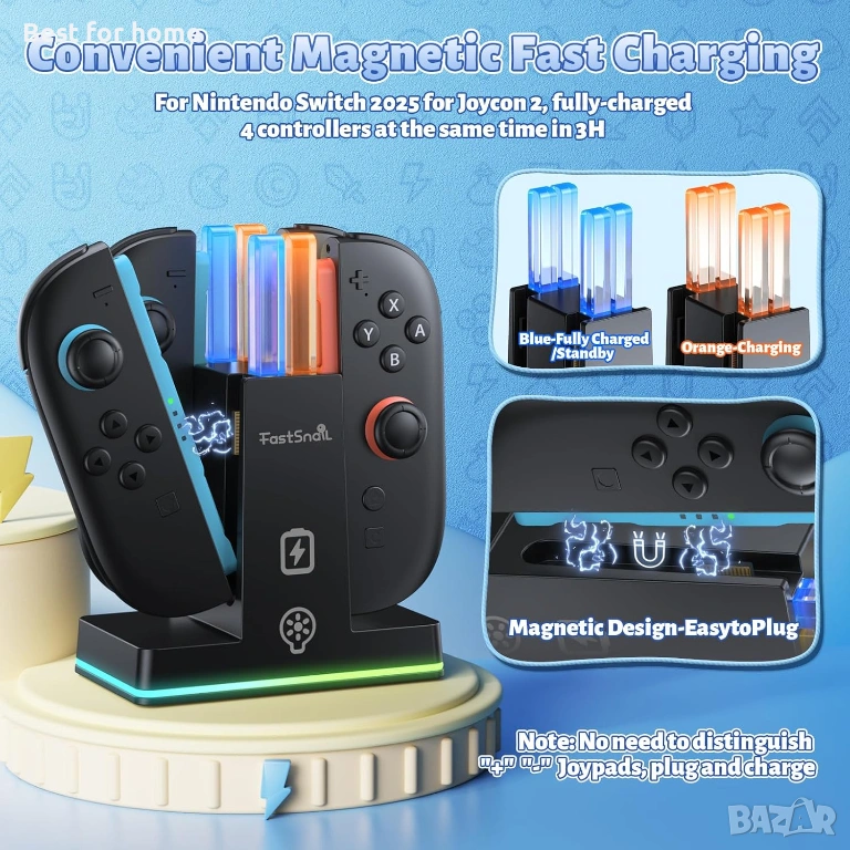 Зарядна докинг станция FASTSNAIL за Nintendo Switch 2 (2025) за Joy-Con 2