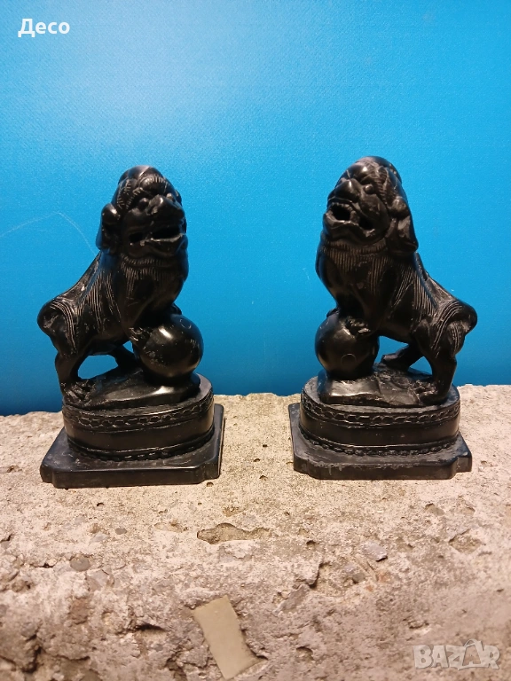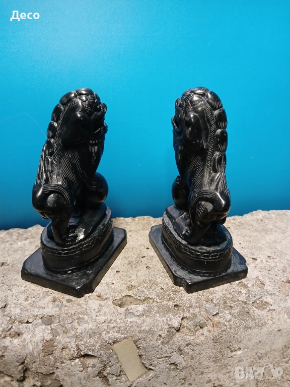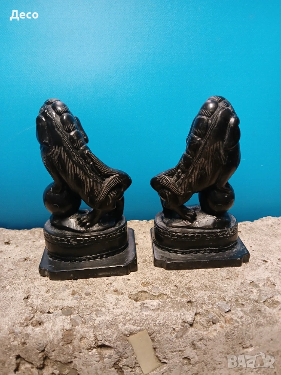 Това са издялани от черен камък фигурки на китайски лъвове пазители (фу кучета).