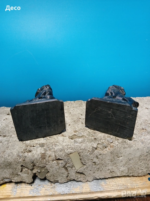 Фу кучета, чифт от китайски произход, от черен базалт върху основа.