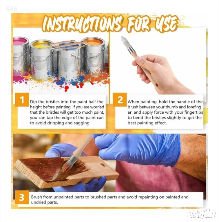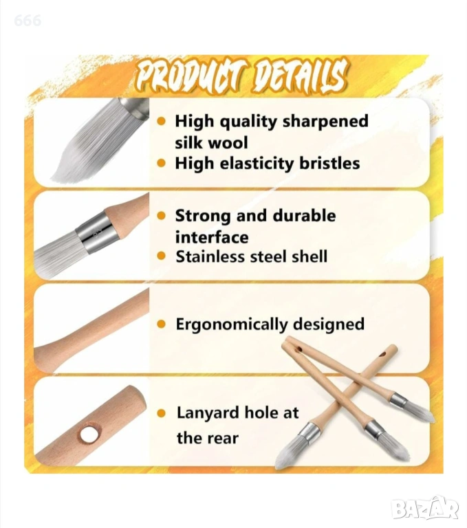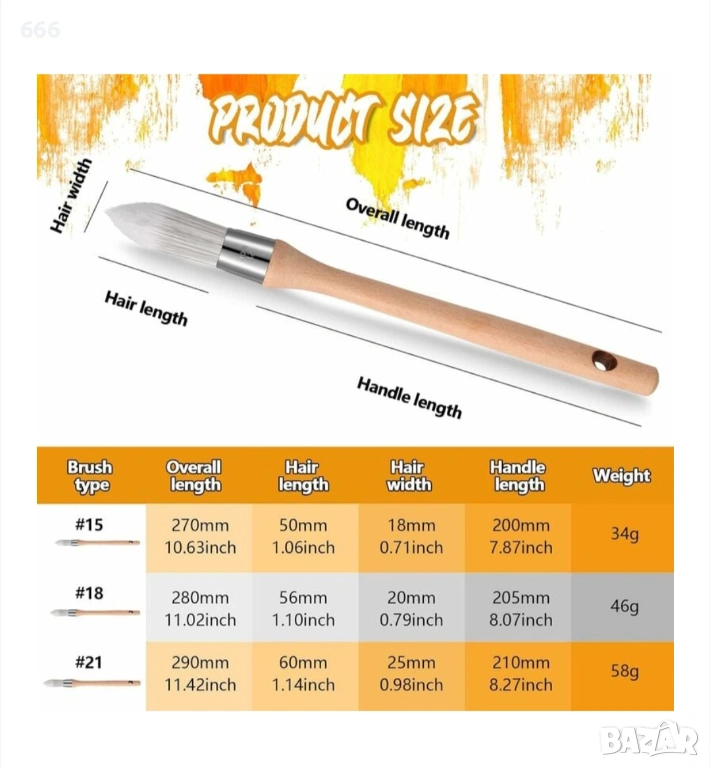 3 стила: нашите остри четки за боядисване на стени приемат 3 разнообразни стила, а именно кръгла четка, дъгова четка, остра четка, общо 3 четки; Те са размер 15, размер 18, размер 21, достатъчни и подходящи за декорация и детайлно боядисване