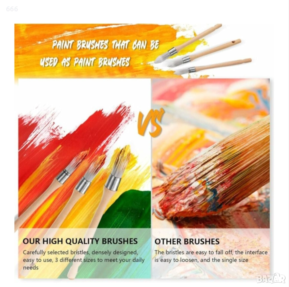 Практичен инструмент: с фина дръжка от масивно дърво нашите синтетични четки за рисуване с палец са удобни за използване и могат да се въртят по време на рисуване, за да се увеличи максимално натоварването на боята, спестявайки време и енергия; Проектирани с естествени влакна без обем (за разлика от естествения косъм), тези четки за рисуване могат да работят чудесно с бои на водна основа, подходящи както за маслени, така и за бои на водна основа.