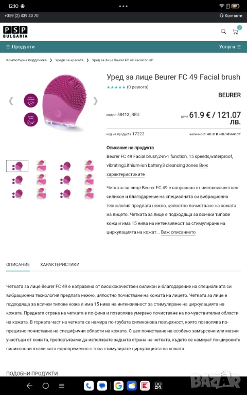 Размери на продукта (Д х Ш х В) 8,2 x 7,7 x 3,1 см. Производител Beurer GmbH, Germany. Произведена в Германия, продава се на половин цена! При закупуване на неща и от другите ми обяви, естествено, че ще има МНОГО ГОЛЕМИ ОТСТЪПКИ!