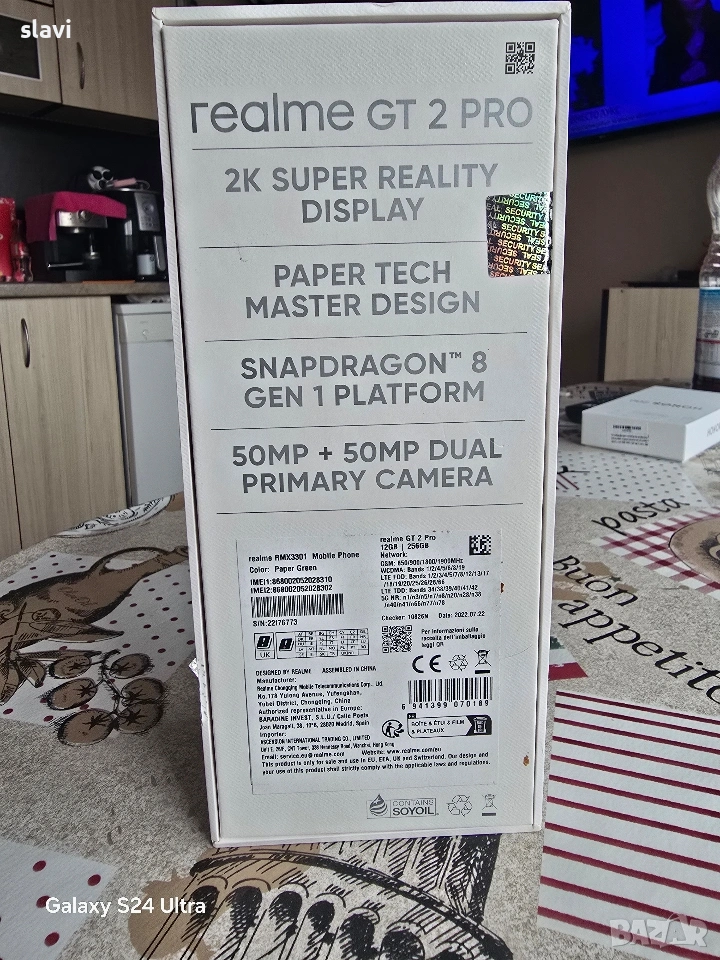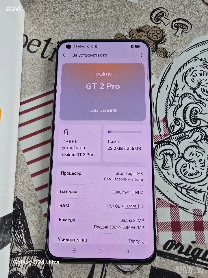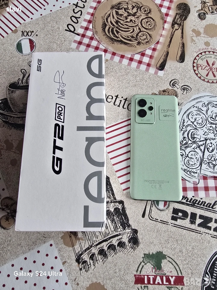 Realme GT2 Pro 5G 12/256GB.Телефона е пълен комплект без абсолютно никакви забележки като нов.Работи перфектно благодарение на флагманския процесор с който е оборудван а именно Snapgragon 8 Gen 1.Снима много добре,батерията е в отлично здраве.Продава се с оригиналния адаптер и кабел.Цена 230€.