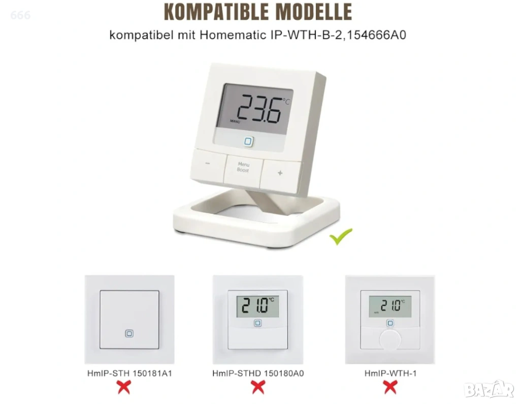 Широка съвместимост: съвместим с Homematic IP-WTH-B-2, настолен термостат за интелигентен дом, 154666A0 (без термостат).